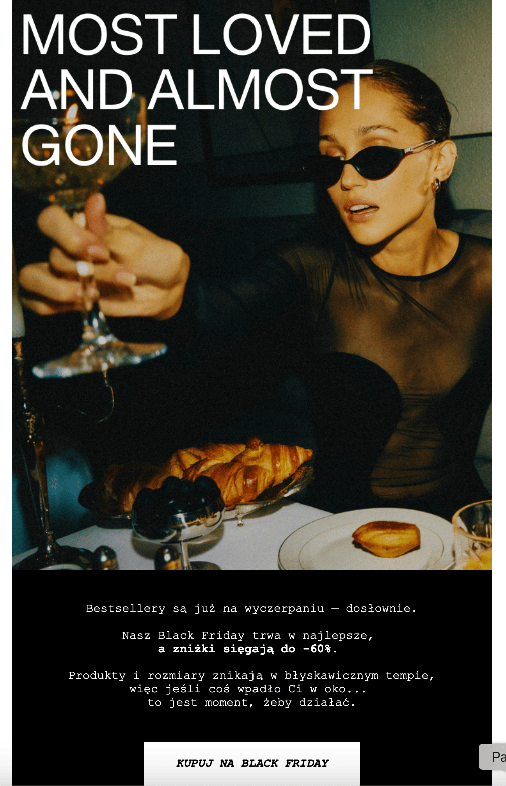 W tym roku logistyka była ciekawa: w piątek jechałam do Krakowa na koncert Borisa Brejchy, więc cały research i zbieranie przykładów musiałam ułożyć tak, aby możliwie wcześniej złapać szeroką perspektywę. Przez kilka tygodni skrupulatnie gromadziłam kampanie, screeny, maile i SMS-y, a w sam Black Friday… wstałam o 5:00 rano, żeby w spokoju usiąść do tej analizy i przygotować ją dla Ciebie 😅