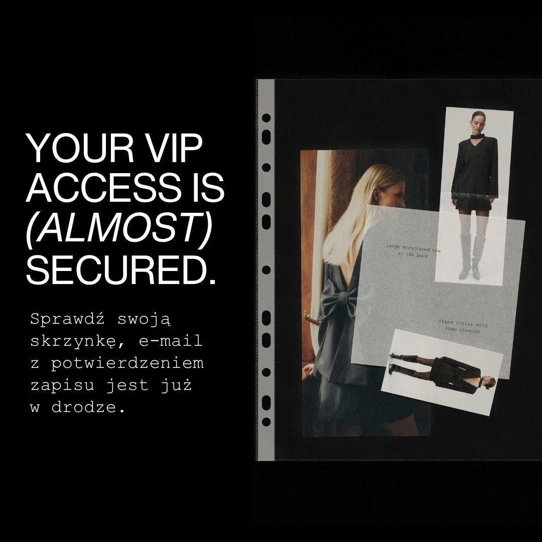 Po zapisie: „Your VIP Access is (almost) secured.” — jedno słowo „almost” i mamy delikatne mikro-napięcie.